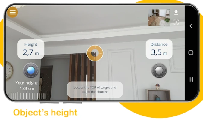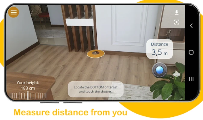 Kutumia Distance Meter ni rahisi ajabu na inahitaji hatua chache tu za moja kwa moja. Ili kupima umbali kutoka kwako hadi kitu, elekeza kamera yako kwenye sehemu ya chini kabisa ya kitu hicho, kisha gusa kitufe cha kupiga picha. Kwa sekunde chache, utaona umbali uliokadiriwa ukionyeshwa kwenye skrini yako. Vivyo hivyo, unapotaka kujua urefu wa kitu, elekeza kamera kwenye sehemu yake ya juu kisha ubofye. Teknolojia yetu ya kisasa inachakata taarifa hizo kwa haraka ili kukupa makadirio sahihi ya urefu.