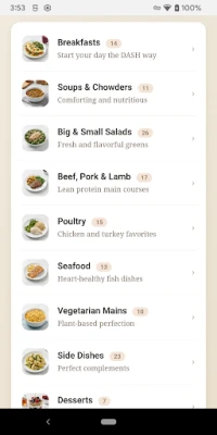 Je, unatafuta njia ladha na yenye ufanisi ya kutunza afya ya moyo wako na kudhibiti shinikizo la damu? Kusahau milo isiyo na ladha au vikwazo vikali! Programu hii inakuletea mkusanyiko wa kipekee wa mapishi ya DASH Diet, yaliyopendekezwa na madaktari, yaliyoundwa mahsusi ili kukusaidia kula vizuri huku ukijali afya yako. Kuanzia kifungua kinywa cha kupendeza kama 'Cinnamon French Toast' hadi milo ya kifahari kama 'Filet Mignon au Poivre', na hata kitoweo cha baharini kama 'Yankee Clam Chowder' hadi kitindamlo kitamu kama 'Chocolate Fondue', utagundua kuwa afya na ladha vinaweza kuendana kikamilifu.