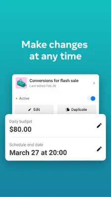 Meta Ads Manager hukuruhusu kudhibiti kampeni zako za matangazo popote ulipo. Unda, hariri na pata maarifa ya kina kutoka matangazo yako kwenye Facebook, Instagram, Messenger na WhatsApp. Pata arifa za haraka na linganisha kampeni zako kwa urahisi.