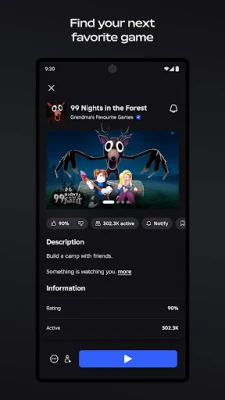 Roblox ni jukwaa la kipekee la kuchunguza, kuunda, na kucheza mamilioni ya uzoefu. Chunguza ulimwengu usio na kikomo, cheza majukumu, shindana, na ungana na marafiki. Kuna kitu kwa kila mtu katika jamii hii kubwa ya waumbaji.